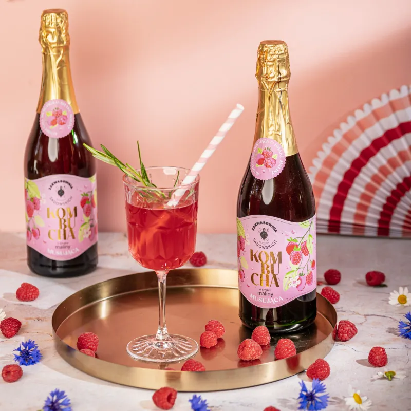 Kombucha musująca o smaku maliny 750ml Zakwasownia