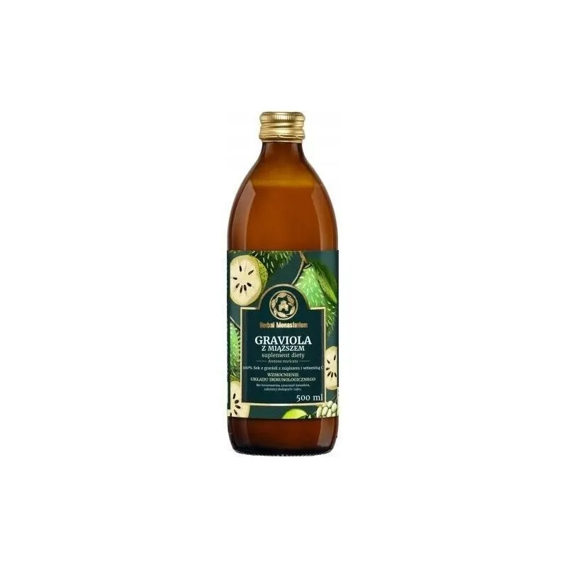 100% sok z gravioli z miąższem jest wytwarzany ze starannie wyselekcjonowanych owoców. Ze względu na wysoki poziom substancji aktywnych zawartych w gravioli, jej fitoterapeutyczne zastosowanie jest przedmiotem licznych badań. Witamina C wzmacnia funkcjonowanie układu odpornościowego i zmniejsza zmęczenie. Dzięki płynnej formie preparat ma szybki początek działania. Nie zawiera konserwantów, sztucznych barwników, substancji słodzących i cukru. Jest drzewem rosnącym w amazońskiej dżungli w Brazylii, ale również w innych częściach Ameryki Południowej. Kwitnie przez cały rok, a prawie wszystkie jej części czyli kora, liście, korzenie, żywica, owoce oraz nasiona, wykazują właściwości prozdrowotne i lecznicze. Owoce gravioli mają owalny, czasem nieregularny zakrzywiony kształt, a ich skórka pokryta jest drobnymi kolcami. Składniki 100% sok z owoców gravioli z miąższem (Annona muricata), kwas L-askorbinowy (źródło witaminy C). Zalecane spożycie 25 ml 2 razy dziennie (50 ml na dobę - 5 łyżek). Stosować przed posiłkiem. Produkt gotowy do bezpośredniego spożycia. Płynna postać ułatwia wchłanianie. Nie należy przekraczać zalecanej do spożycia dziennej porcji. Przechowywanie: Przechowywać szczelnie zamknięty, w temperaturze pokojowej, nie przekraczającej 25'C, w sposób niedostępny dla małych dzieci. Chronić przed bezpośrednim działaniem promieni słonecznych. Po otwarciu przechowywać w lodówce do 21 dni. Przeciwwskazania: Nie stosować w przypadku nadwrażliwości na składniki produktu. Kobiety w ciąży i karmiące piersią powinny skonsultować stosowanie z lekarzem. Opakowanie :500ml Uwagi Suplementy diety nie mogą być stosowane jako substytut (zamiennik) zróżnicowanej diety ani zdrowego trybu życia. Nie należy przekraczać zalecanej porcji produktu do spożycia w ciągu dnia. Suplementy diety powinny być przechowywane w sposób niedostępny dla małych dzieci. Przed zastosowaniem produktu sugerujemy zapoznanie się z dokładnymi informacjami podanymi na opakowaniu lub załączonej ulotce.