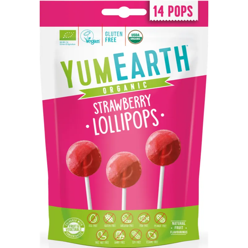 Lizaki Truskawkowe 87 g EKO (14 sztuk) to ekologiczne lizaki owocowe, stworzone z naturalnych składników, idealne dla dzieci i dorosłych. Produkt jest bezglutenowy, odpowiedni dla wegan oraz nie zawiera sztucznych aromatów, barwników, oleju palmowego ani białego cukru.