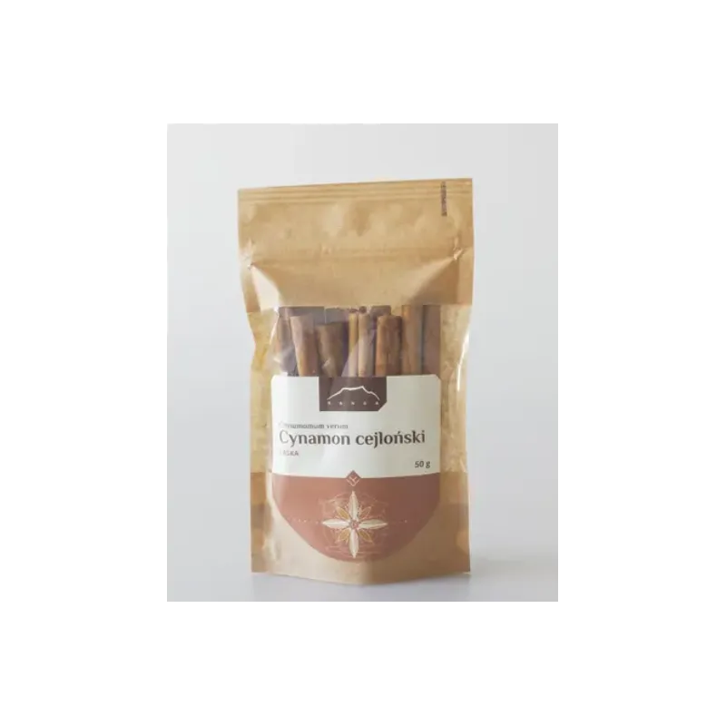 Cynamon cejloński (Cinnamomum verum) – zwany także prawdziwym, jest to jedna z najstarszych przypraw świata o słodko-korzennym aromacie. Laska cynamonu stanowi wysuszoną i zwiniętą korę wiecznie zielonego drzewa z rodzaju Cinnamomum, rosnącego w Południowo-Wschodniej Azji, szczególnie w Chinach, Indiach i na Sri Lance. Cynamon ceniony był już w starożytnym Egipcie. Ze względu na niepowtarzalny bukiet smakowo-zapachowy jego zastosowanie rozciąga się na wiele zakątków świata. To bogate źródło antyoksydantów i olejków eterycznych. Cinnamomum verum wspiera naturalną odporność, wspomaga trawienie, korzystnie wpływa na krążenie i delikatnie rozgrzewa organizm. Mimo swojego słodkiego smaku, nie powoduje wzrostu stężenia cukru we krwi, a wręcz pomaga utrzymać jego prawidłowy poziom. Powszechnie występującą w sklepach odmianą jest cynamon chiński. Cynamon cejloński to odmiana szlachetna – jaśniejsza, delikatniejsza, bardziej słodka, o niskiej zawartości kumaryn. To świetny dodatek do słodkich potraw: ciast, owsianek, deserów. Można nim urozmaicić codzienną kawę, a także wypróbować do dań wytrawnych w stylu indyjskim.