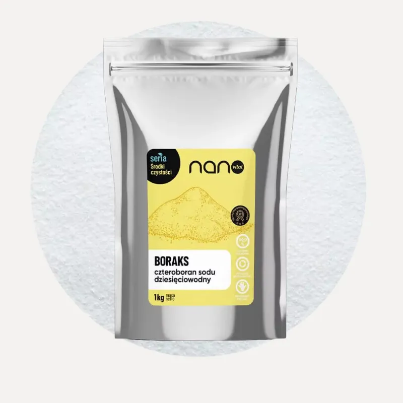 Boraks Nanovital 1 kg to wysokiej jakości czteroboran sodu dziesięciowodny (99,9%), znany jako sól sodowa kwasu borowego. To wszechstronny, naturalnie występujący związek mineralny o wyjątkowych właściwościach czyszczących, dezynfekujących i odplamiających. Doskonale sprawdza się w domu, biurze oraz w zastosowaniach profesjonalnych.
