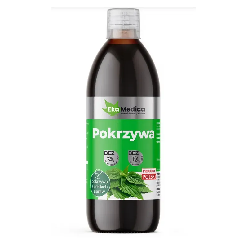 Pokrzywa to suplement diety w formie płynnej, wyprodukowany z ekstraktu z liści pokrzywy (Urtica dioica L. folium), pasteryzowany.