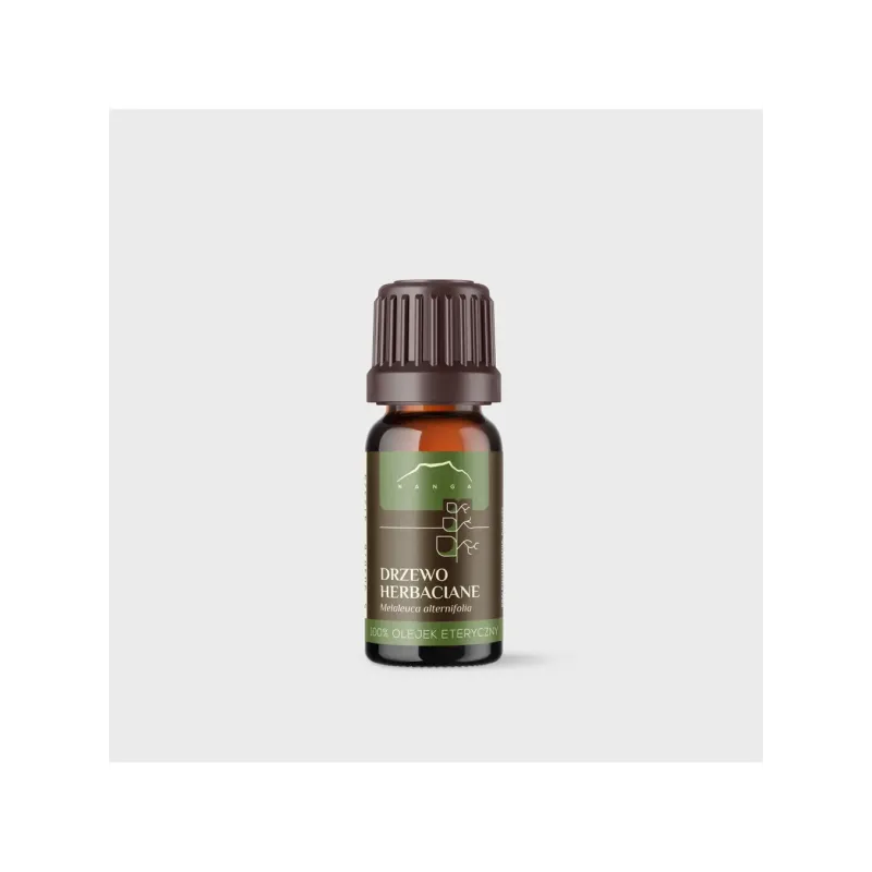 Olejek eteryczny z drzewa herbacianego (Melaleuca alternifolia) marki NANGA, pojemność 10 ml, to naturalny produkt o wysokiej czystości, 100% czysty olejek eteryczny. Jest ceniony w aromaterapii, kosmetyce oraz naturalnej pielęgnacji skóry i włosów. Dzięki swoim właściwościom antybakteryjnym i antyseptycznym znajduje szerokie zastosowanie w codziennej pielęgnacji.