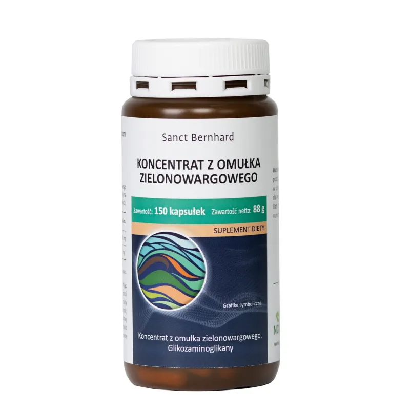 Omułek Zielonowargowy – koncentrat 150 kapsułek Sanc Bernhard to naturalny suplement wspierający prawidłową funkcję stawów, elastyczność i komfort ruchu, szczególnie polecany osobom aktywnym fizycznie oraz dbającym o zdrowie układu kostno-stawowego.
