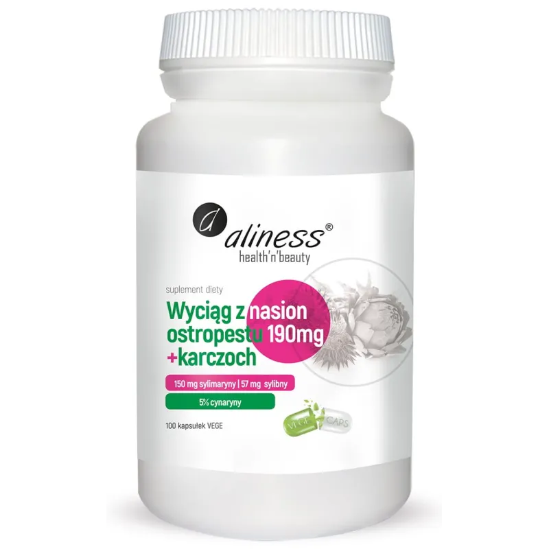 Suplement diety Ekstrakt z nasion ostropestu 190 mg + Karczoch x 100 Vege kapsułek to naturalne wsparcie dla wątroby, układu trawiennego i procesów detoksykacji, idealny do codziennej suplementacji.