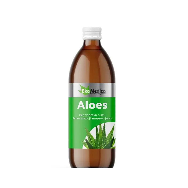 Aloes z miąższem marki Eka Medica, pojemność 0,5 L, to naturalny suplement diety w formie soku, zawierający miąższ aloesu (Aloe vera). Produkt wspiera prawidłowe funkcjonowanie organizmu, wspomaga trawienie, nawilża błony śluzowe i może wspierać odporność, stanowiąc wartościowy element codziennej diety.