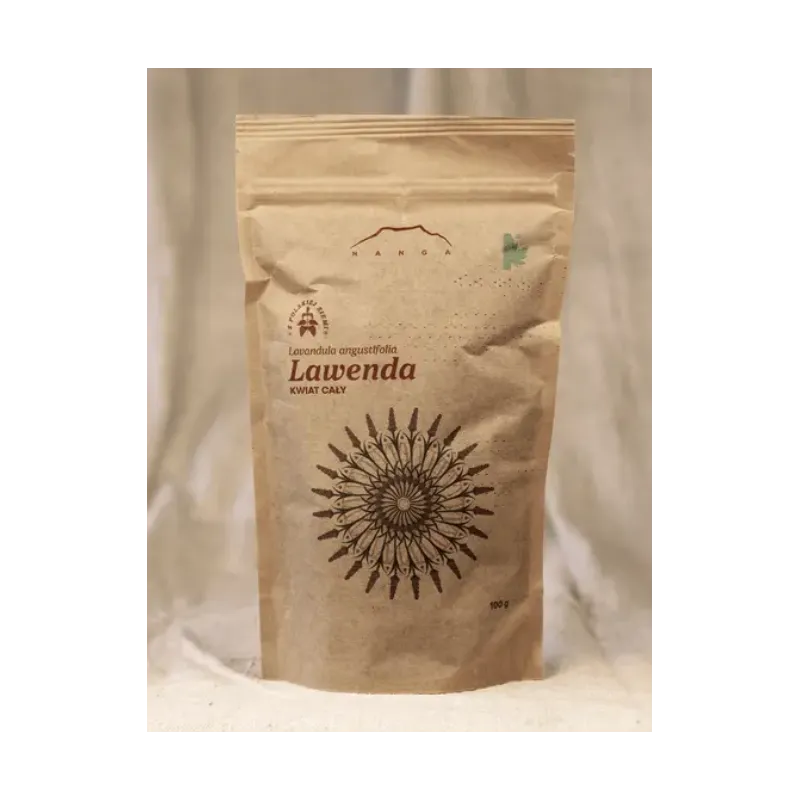 Lawenda – Kwiat 100 g NANGA to naturalny surowiec roślinny o intensywnym aromacie i właściwościach relaksujących, idealny do przygotowania naparów, mieszanek ziołowych, kosmetyków i aromaterapii.