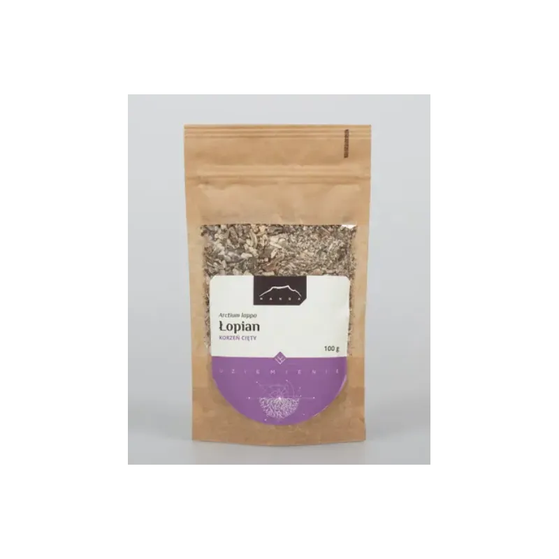 Korzeń łopianu (Arctium lappa) marki Nanga to naturalny surowiec zielarski o szerokim zastosowaniu wewnętrznym i zewnętrznym. Wspiera prawidłowe funkcjonowanie organizmu, szczególnie układu pokarmowego, moczowego oraz skóry.