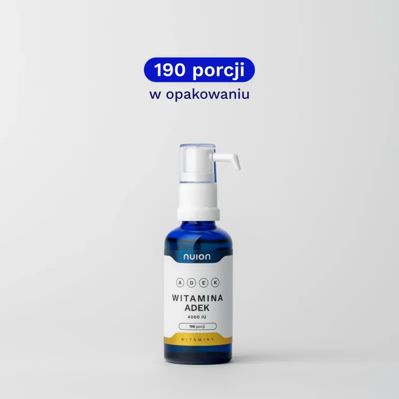 Suplement diety ADEK to połączenie czterech kluczowych witamin rozpuszczalnych w tłuszczach: A, D3, E oraz K2 MK-7. Synergiczne działanie tych składników wspiera funkcjonowanie całego organizmu – od odporności, poprzez kości, aż po skórę i wzrok. To wygodna i skuteczna forma suplementacji, idealna dla osób dbających o zdrowy, zbilansowany tryb życia.