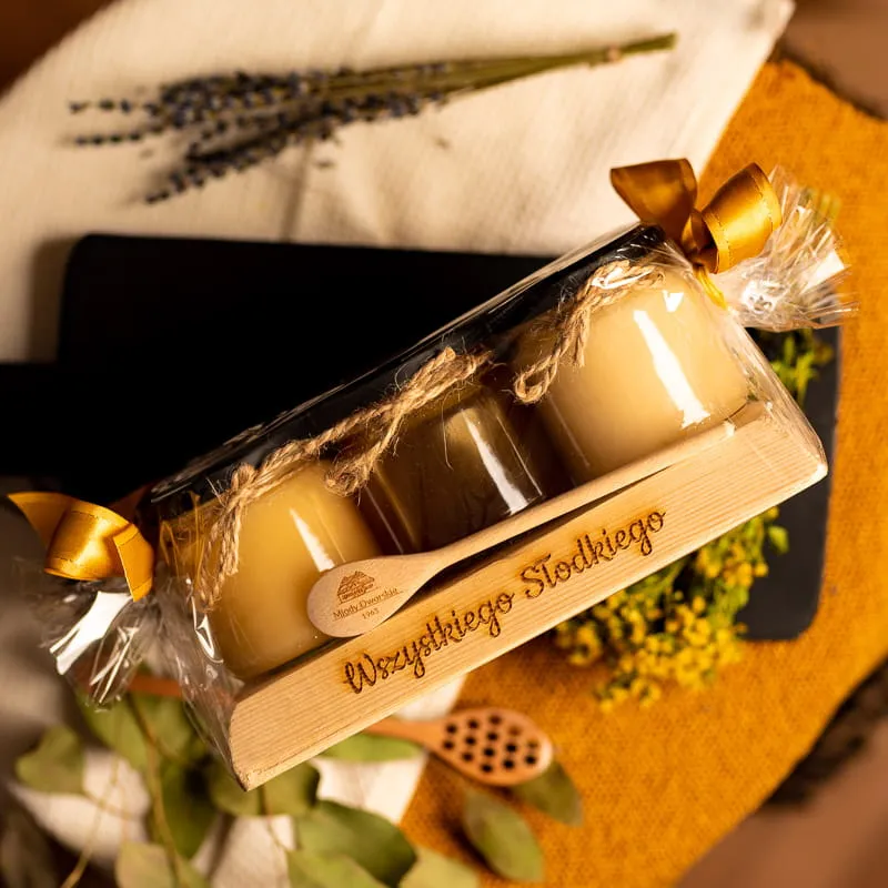 Zestaw prezentowy miody na desce 3x250g nr2 Miody Dworskie