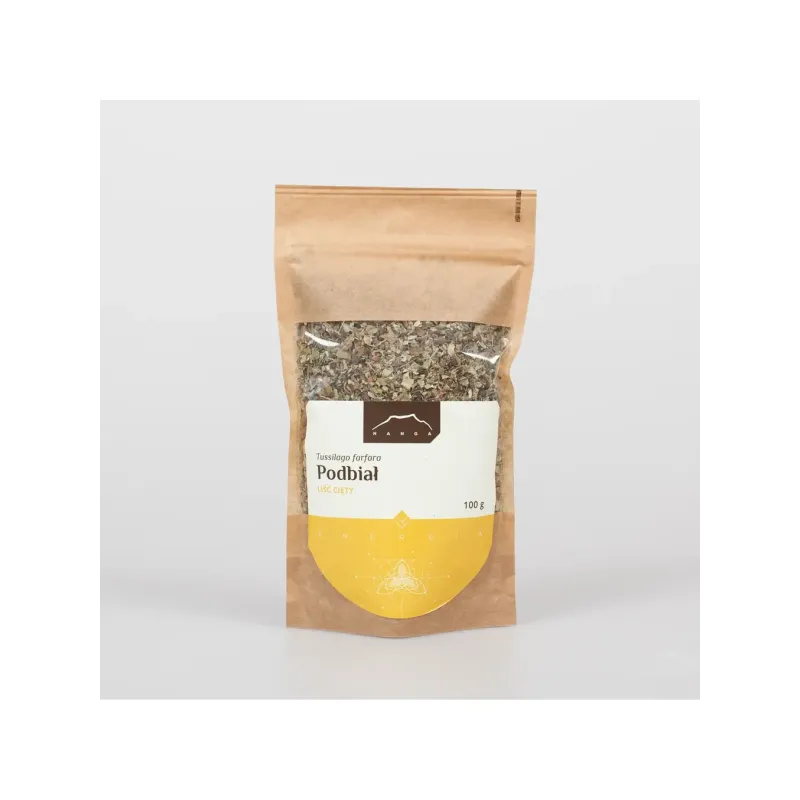 Liść podbiału zawiera naturalnie występujące związki roślinne, takie jak śluzy, flawonoidy, garbniki i kwasy fenolowe, których obecność została potwierdzona w literaturze zielarskiej i botanicznej. Surowiec może być stosowany do przygotowania naparów, mieszanek ziołowych oraz tradycyjnych zastosowań domowych.