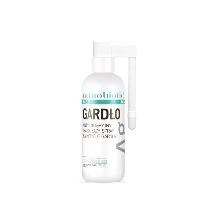 Nanobiotic® MED Silver Gardło to oczyszczający spray na infekcje gardła o działaniu antybakteryjnym i przeciwgrzybiczym. Preparat wykazuje najwyższą skuteczność dzięki innowacyjnemu połączeniu działaniu srebra, złota i miedzi aXonnite®. Wielokierunkowo i szybko pomaga zwalczać infekcje.
